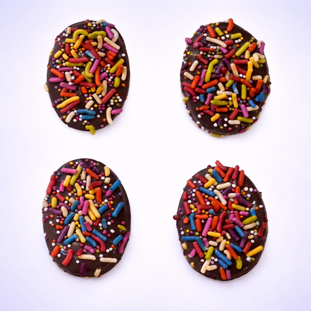 Rich, creamy fudge dipped in chocolate and finished with a colorful crunch — a fun twist on a classic favorite.